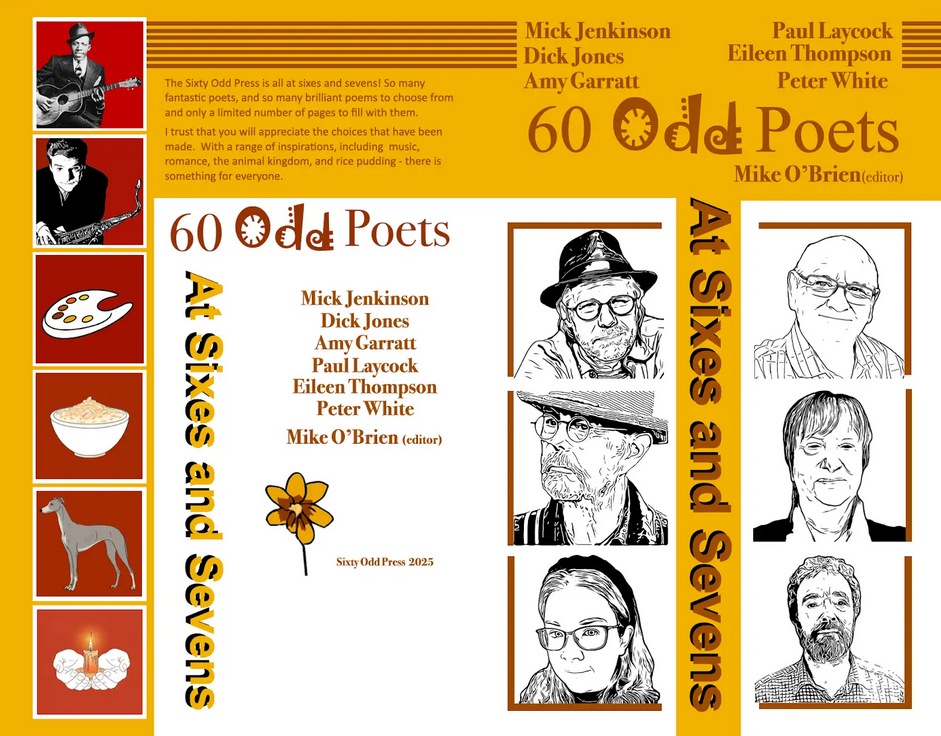 At Sixes and Sevens is the seventh volume in the Sixty Odd Poets series. Each volume features the work of six poets who have previously appeared on the Sixty Odd Poets website, earning the title of Fellow of the Order of the Sixty Odd. With a range of subjects, styles and poetic forms each edition has something for everyone. This volume features Mick Jenkinson, Dick Jones, Paul Laycock, Amy Garratt, Eileen Thompson and Peter White. With writing inspired by music, romance, the animal kingdom, and rice pudding and plenty else besides.
